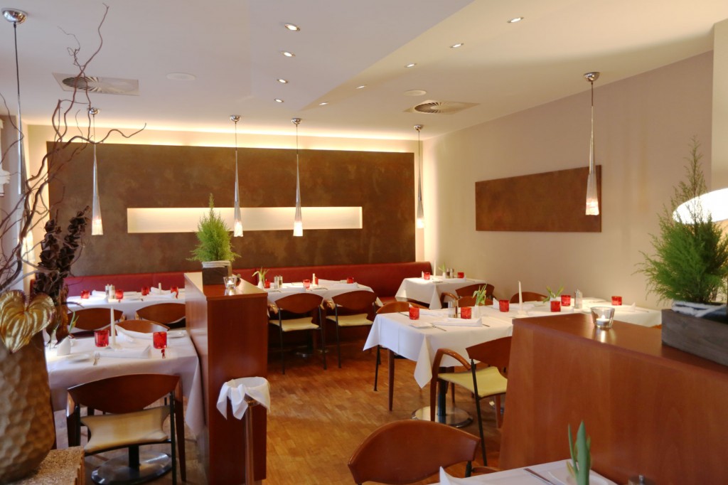 Die im Restaurant gewählte Farbe Terre d’ombre brûlée claire ist eine der drei aufgehellten Umbren der Salubra I – Reihe. Schon früher wurde diese Farbe mit dem Begriff Sand beschrieben und man nannte sie ebenfalls eine Farbe mit Erinnerungswert. Sie wirkt im Raum dynamisch und zeigt ihre Schönheit bei jedem Licht.